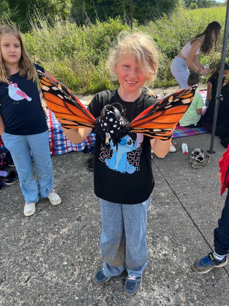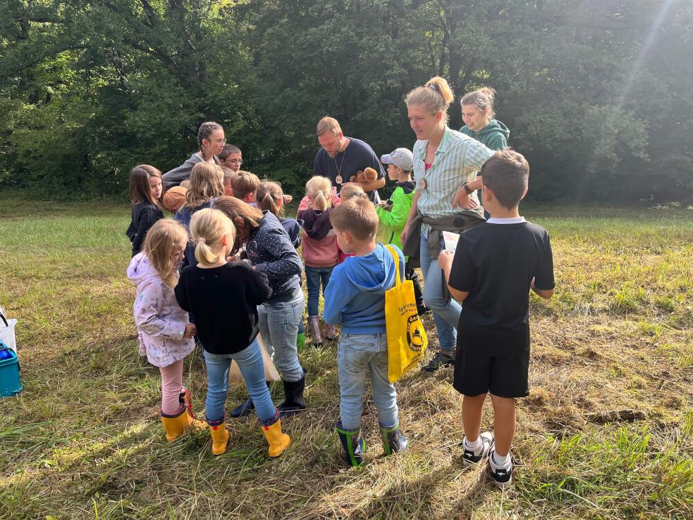Die Tiere durften gestreichelt und gefüttert werden. Zwischendurch konnten sich die Kinder bei einem mitgebrachtem Lunchpaket stärken. Zum Schluss gab es ein lustiges Schubkarren-Wettrennen.